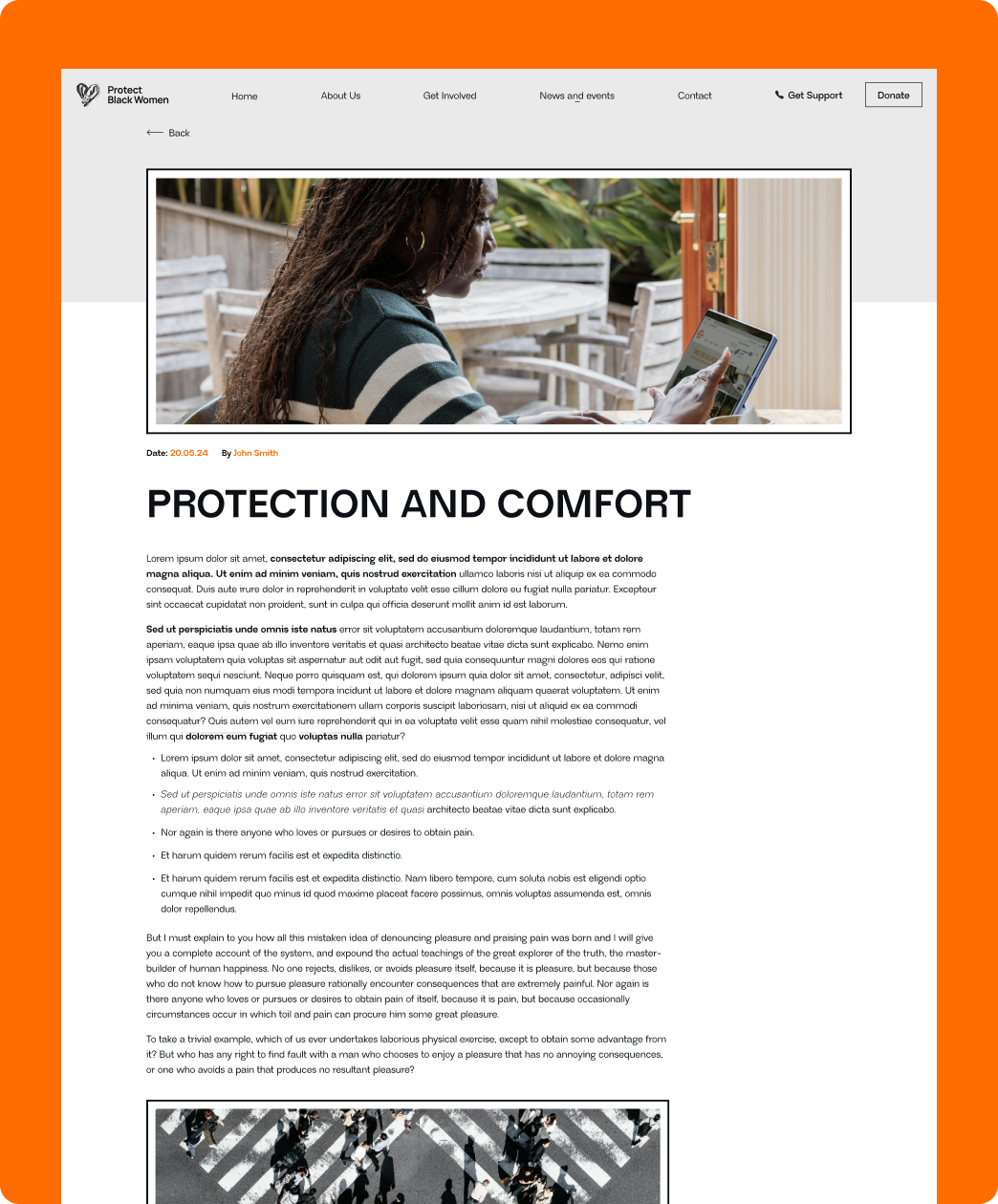 The website for Protect Black Women combines bold visuals and a straightforward, informative layout. The design incorporates strong, vibrant colors to symbolize empowerment, alongside clean typography and intuitive navigation to engage users. The platform is fully responsive, ensuring an accessible experience across all devices.